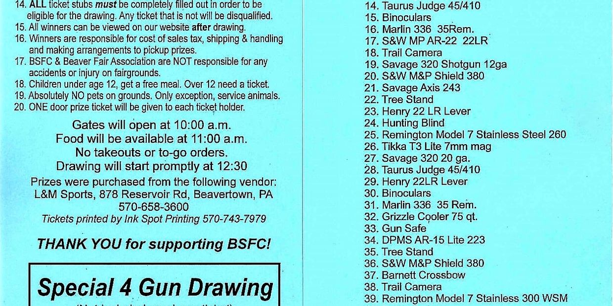 Come out and enjoy the day with food, drinks, milkshakes and a chance to win some door prizes that are all included in the ticket price. Fire Company apparel, 50/50 raffle tickets, and rip tickets will be available as well the Special 4 Gun Drawing